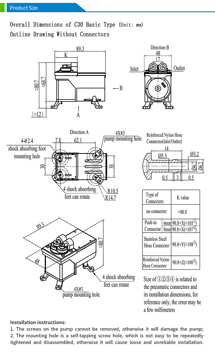 C30 series basic type brushless motor diaphragm vacuum pump
