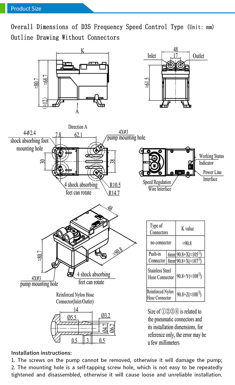 The D35 series miniature air pump is a compact vacuum pump with integrated speed and flow control function. The suction port connected to it can realize the function of pumping or vacuuming, and the exhaust port connected to it can realize the function of blowing or pumping.